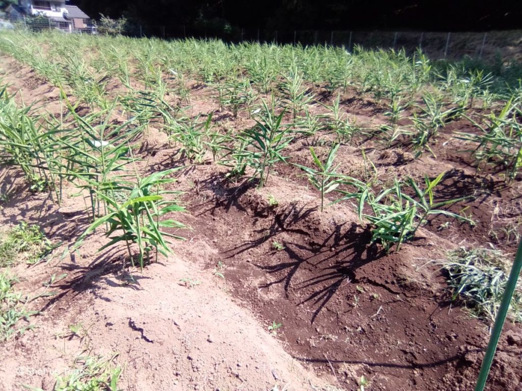 周りの草の伸びも早いので、草取りもこまめにしていかなくてはなりませんが、草取りをしていても早くもショウガの香りがしているようです。