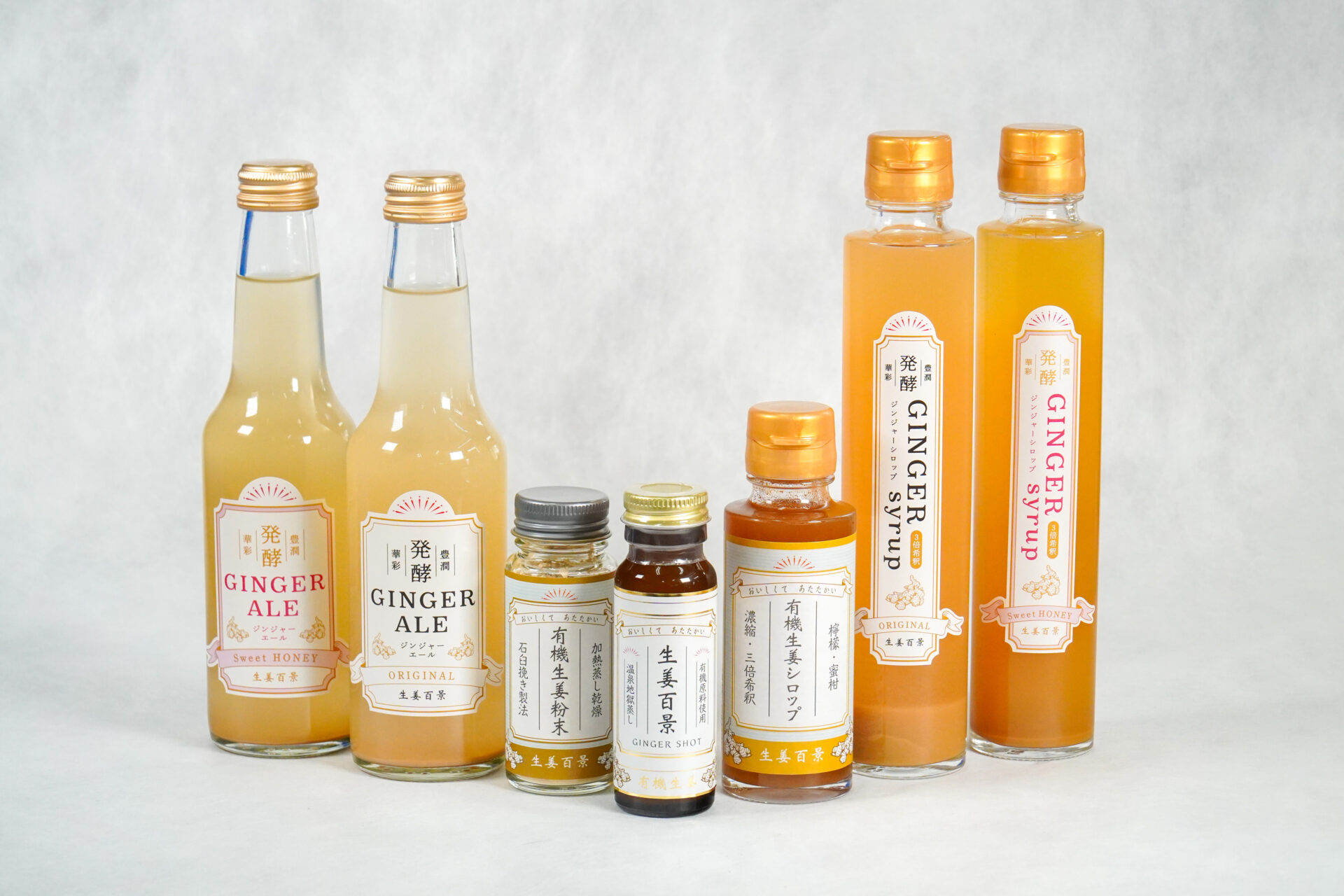 生姜百景の「おいしくて、あたたかい」のコンセプトのもと、有機JAS認証を取得した有機素材とおいしさにこだわった商品となります。「生姜百景 GINGER SHOT」をはじめ「有機生姜粉末」「有機生姜シロップ」「発酵ジンジャーシロップ」等をご用意しております。